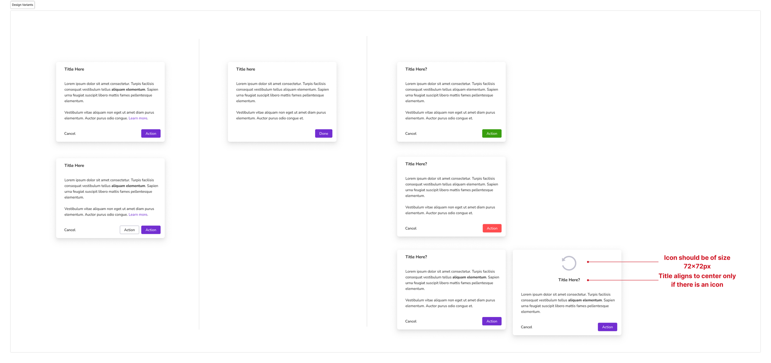 Dialogs are one of those UI elements that every app has throughout the experience. We identified three categories: “information” with read-only content, “configuration” where some edits or actions are taken and “confirmation” where the action warrants an extra click.